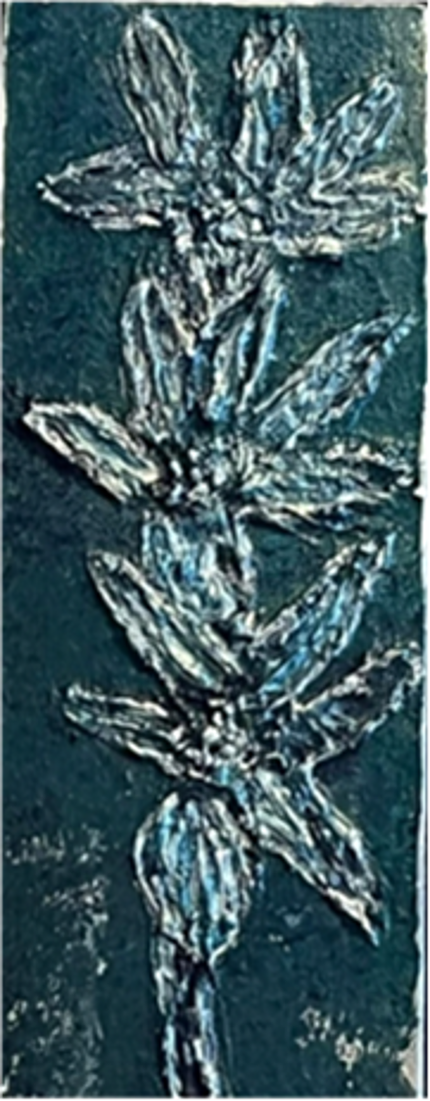För att bygga strukturen i tavlorna använder jag olika material såsom 3D-färg, strukturpasta, utslitna lakan, handdukar, sand, lera och salt. Det är bara fantasin som sätter gränserna för vad som går att använda. Jag tänker återbruk och är kreativ.