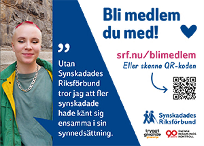 Medlemsannons i gråvitt. "Bli medlem du med!", kontaktinfo till SRF.